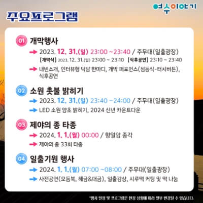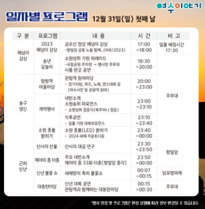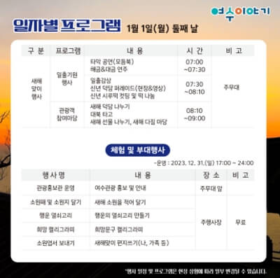 12/31 첫째날, 1/1 둘때날 행사는아래 버튼을 통해 크게 확대해서 보시는 것을 추천합니다.